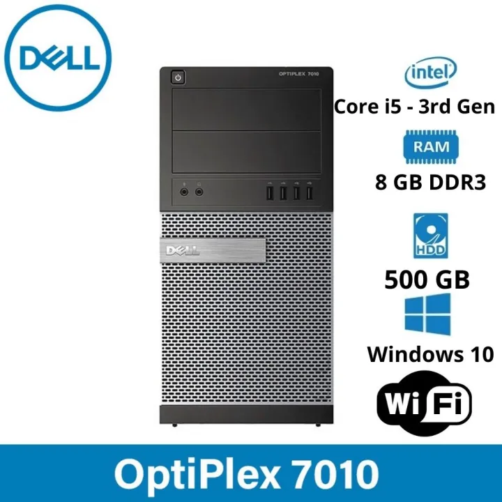 Renewed - Dell OptiPlex 7010 MT (mid-tower) Tower PC - Intel Core i5 3rd Gen - 8GB DDR3 - 500GB HDD - WiFi - Windows 10