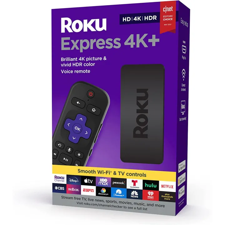 Roku Express 4K+ 2021 | Streaming Media Player HD/4K/HDR with Smooth Wireless Streaming and Roku Voice Remote with TV Controls, Includes Premium HDMI® Cable