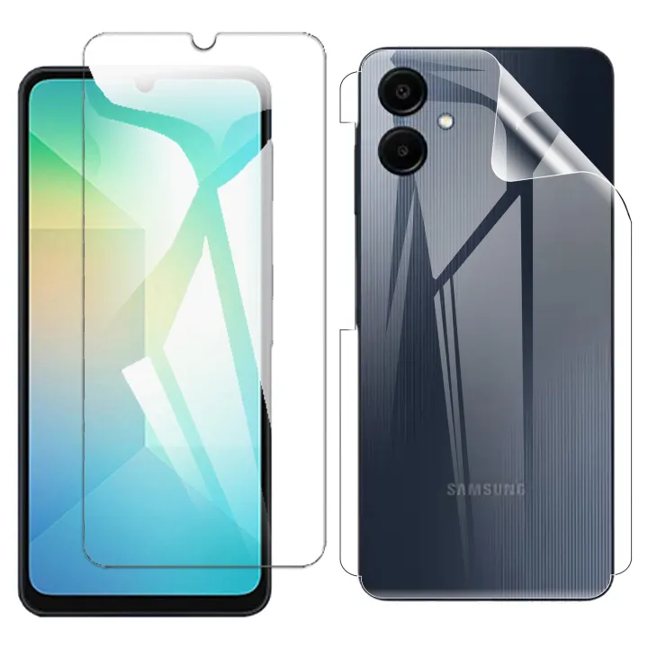 Samsung A06 Tempered Glass Screen Protector Premium High Quality Polish Glass + Back Jelly Protector Clear Soft Protection Film Transparent Hydrogel Film Protector For Galaxy A06