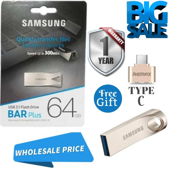 Samsung BAR Plus 64GB USB + Type c OTG Good Flash Drive Speed Memory Stick Metal Body Imported (1 YEAR WARRANTY)