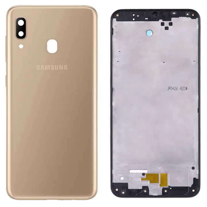 Samsung Galaxy A20 Middle Frame Housing with Power Volume Buttons & Camera Lens Complete Body Casing Replacement Galaxy A20 - Gold