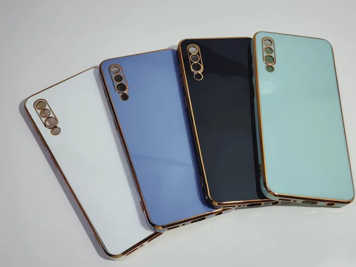 Samsung Galaxy A50 Plating Soft Case Lens Protector Square Frame Silicone Glossy Shockproof Phone Back Cover