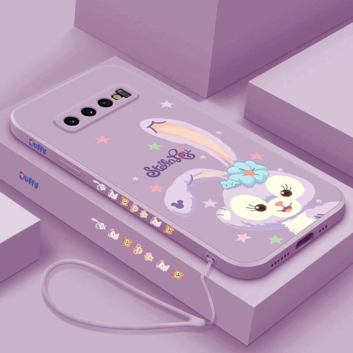 Samsung Galaxy S10 S9 S10+ Plus S10E Cute Stellalou Casing Square Edges Liquid Silicon Back TPU Soft Case with Lanyard Cover
