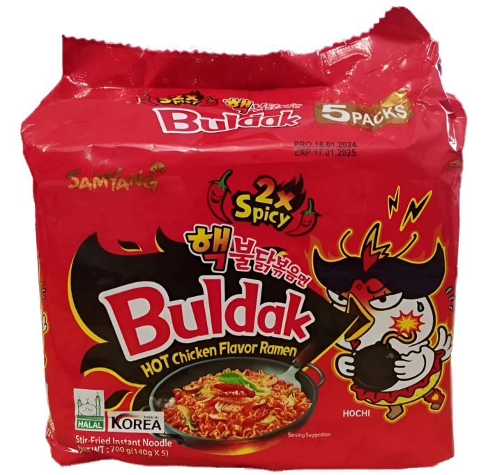 Samyang Red 2x Spicy, Pack of 5 Instant Noodles 2X Spicy Ramen Noodles (RED 5 pieces) Imported Noodles Korean Noodles