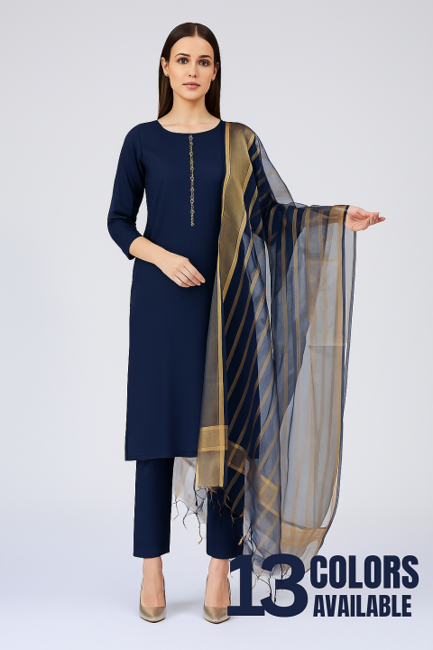 SastaaE 3 Pieces Unstitched Katan Silk Plain Shirt & Trouser With Organza Lining Dupatta For Womens & Girls Unstitched Fabric For Women