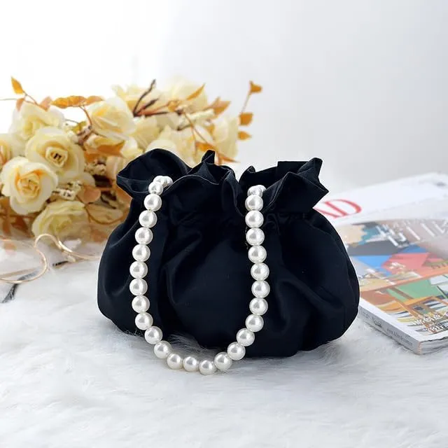 Satin Soft White Aesthetic Pearl Chain Dumpling Bag for girl Shoulder Handbag 2024 - Purse for girls stylish