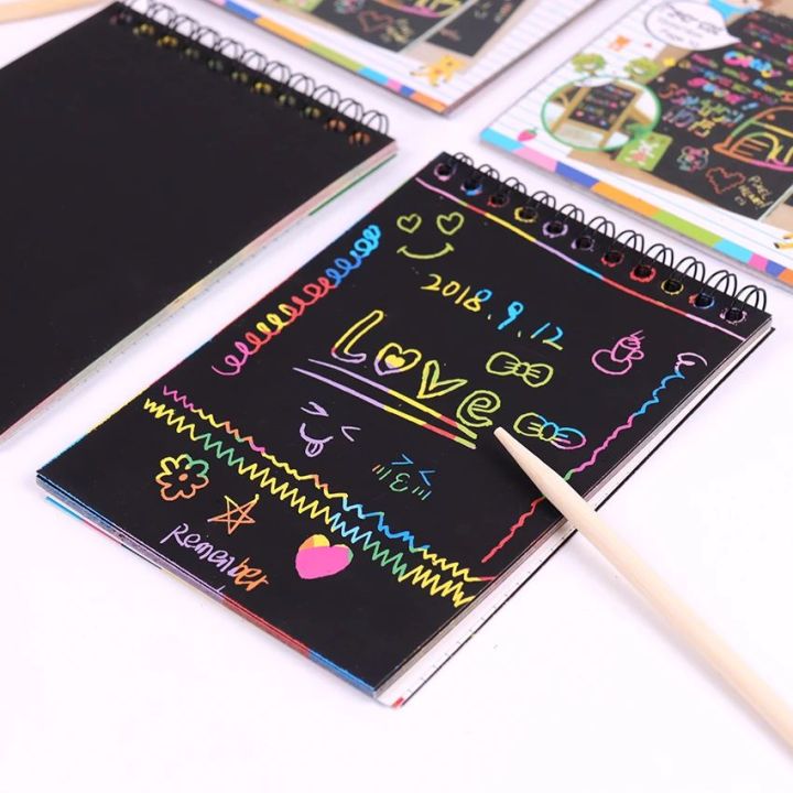 Scratch Note Black Cardboard Creative DIY Draw Sketch Notes for Toy Notebook School Supplies