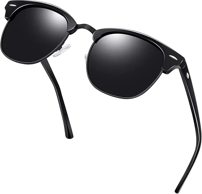 Semi Rimless Polarised Sunglasses Men Women Classic Horn Rimmed Frame UV400 Half Frame Shades