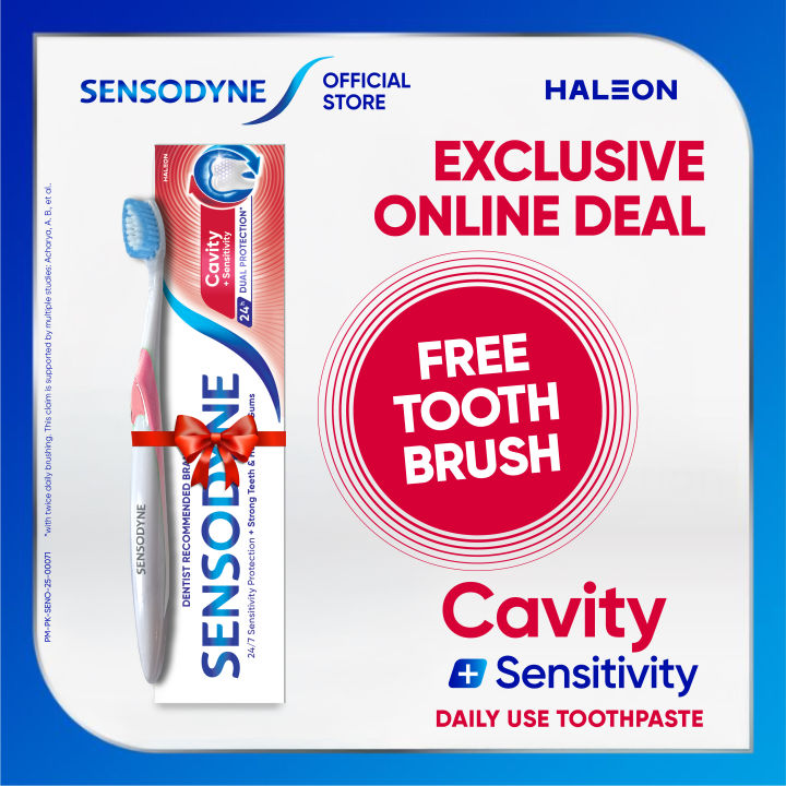 Sensodyne Cavity + Sensitivity Toothpaste, 24H Dual Protection, 100g X Free Toothbrush