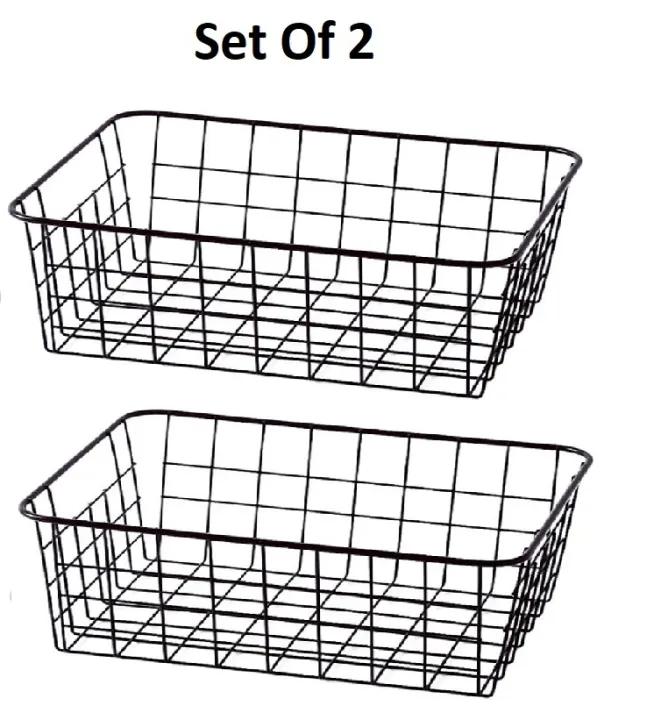 Set of 2 Wire Storage Basket Bins Organizer, Metal Wire Basket Freezer Storage Organizer Bins with Handles for Kitchen Cabinets, Pantry, Closets, Bedrooms, Bathrooms,Freezer,28.5x22x12cm