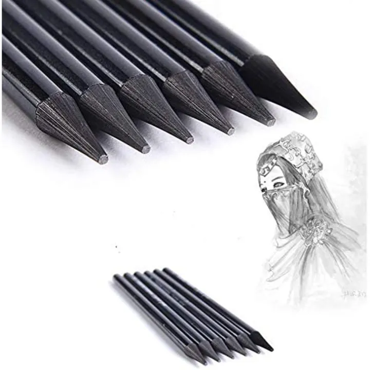 Set of 6 - Soft Medium and Hard Drawing Woodless Charcoal Pencils for Sketching, Shading, Beginners & Journaling - Black Charcoal Pencil for Drawing, Writing, Shading, Coloring, Soft Pencil No Wood, Gift for Artist, Hobbyist, Beginner