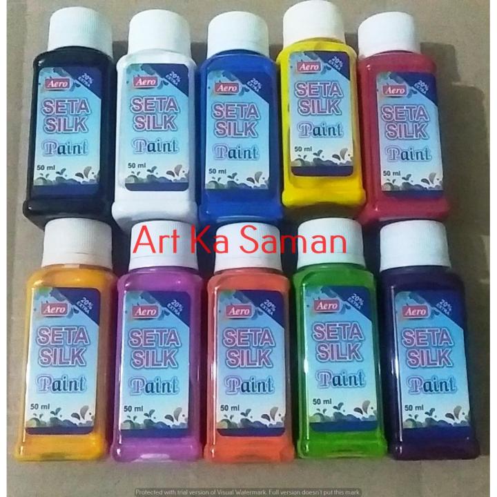Seta Silk Paints Set Of 10 in 50 Ml by Aero For Fabric Lawn, Silk, Organza and Georgette Crinkle.