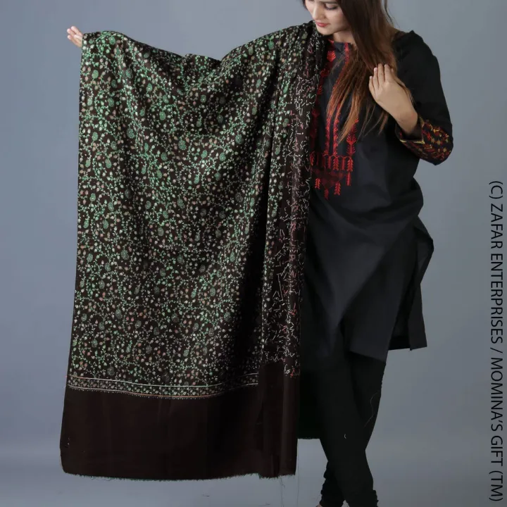 Shawl For Women | Full Kashmiri Block Print and Sui Handwork Jaal Stoler For Girls