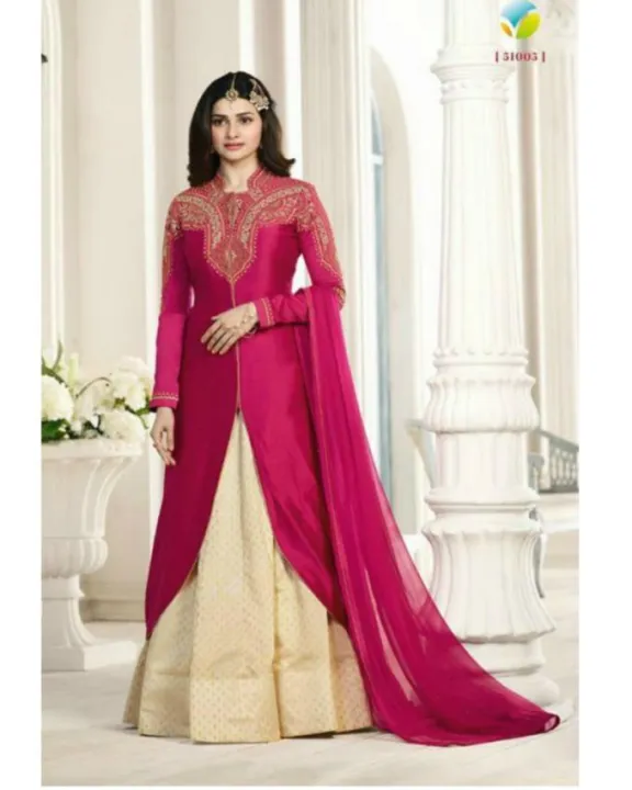 Shocking Pink Georgette Embroidered Semi-Stitched Lengha Suit For Women - 3 Pcs Parachi-51005