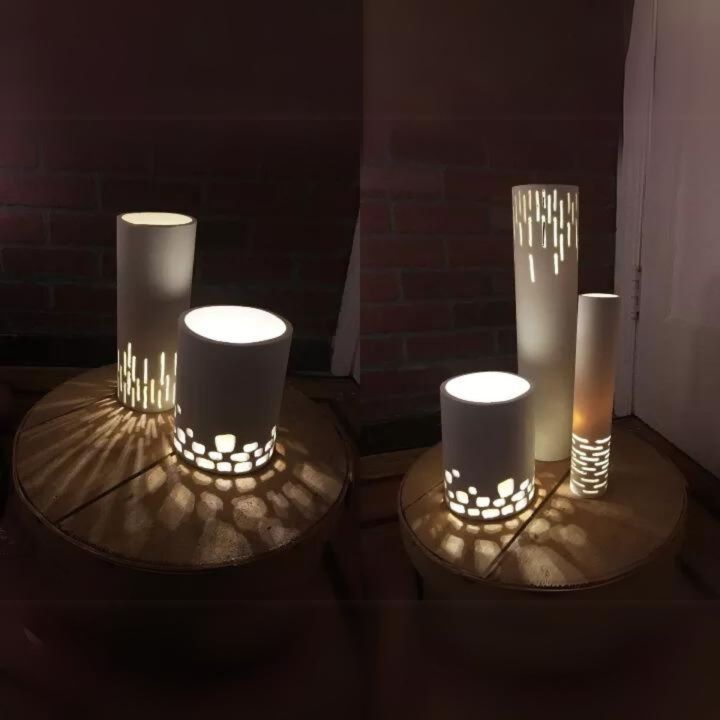 Side Table Pipe Lamp With Built In LED Light Bedroom Side Table Lamps | Laser Cut Cnc Art | Study Table And Night Light