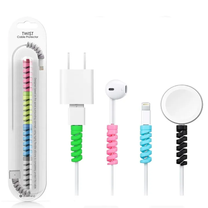 Silicon USB Cable Protector Charger Wire Saver 4 Pieces Covering Set Earphones Winder with Spiral Shape Clip for Android/Laptop/Charging Cords