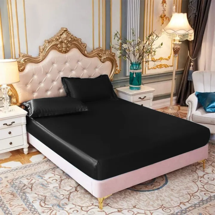 Silk%20Fitted%20Bedsheet%20Plain%20King%20Size,%203%20Piece%20Printed%20Fancy%20Silk%20Fitted%20Bed%20Sheet%20King%20Size%20with%202%20Silk%20Pillow%20Covers,%20Silk%20Bed%20Sheet%20King%20Size%20Fancy%20has%20Soft%20and%20Elegant%20Feel%20-%20Image%201
