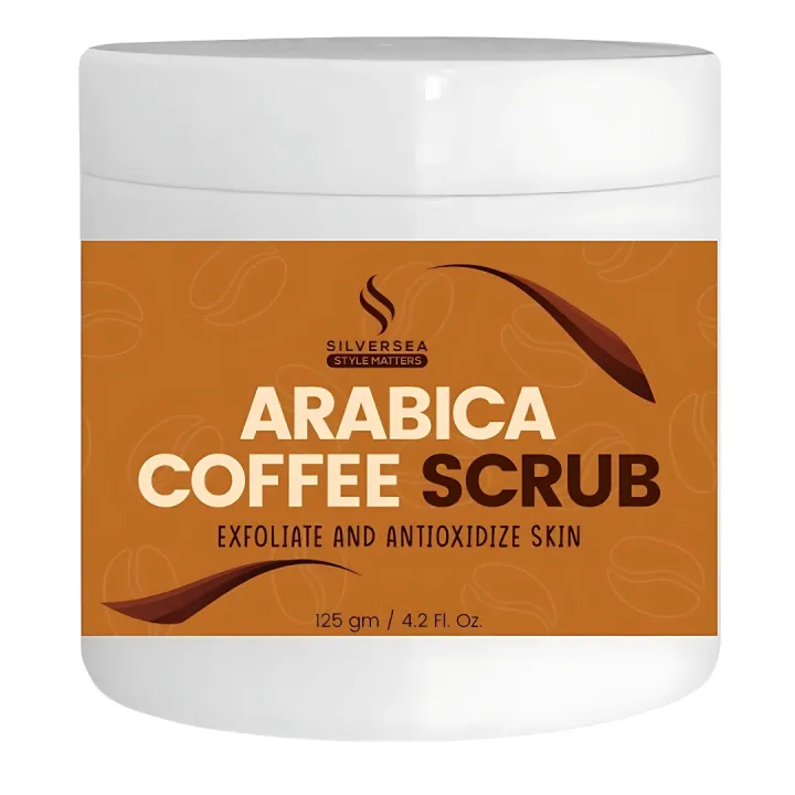SilverSea Arabica Coffee Scrub for Face and Body - Natural Exfoliating Scrub with Organic Arabica Coffee Grounds, Moisturizing, Anti-Aging, Brightening, Deep Cleansing, Pore Minimizing, Skin Tightening, 100% Natural Ingredients, Suitable for All Skin Type