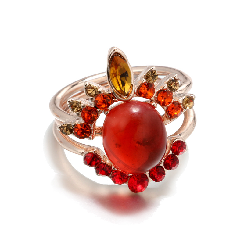 Simple Fashion Popular Red Gem 3-piece Set suit Australian Gem Crown Ring suit Women