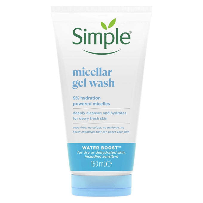 Simple Water Boost Micellar Facial Gel Wash 150 ML-For Dry Skin - Dehydrated Skin - Sensitive Skin - 100% Soap Free-Made In Poland
