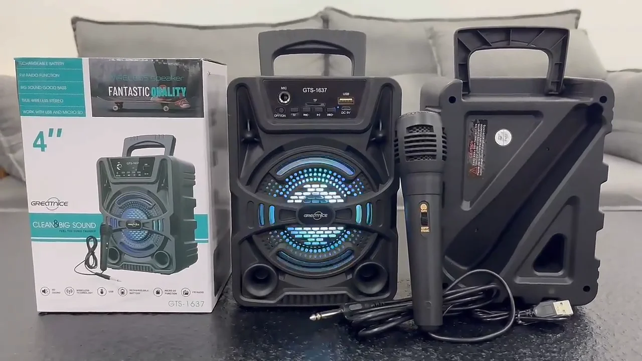 Sixonic GTS 1637 / 1638 Portable Rechargeable Wireless Bluetooth Speaker with Microphone – Best for Small Gatherings High Quality Stereo Sound, Big Woofer Mp3 Speaker FM Radio USB Memory Card Supported