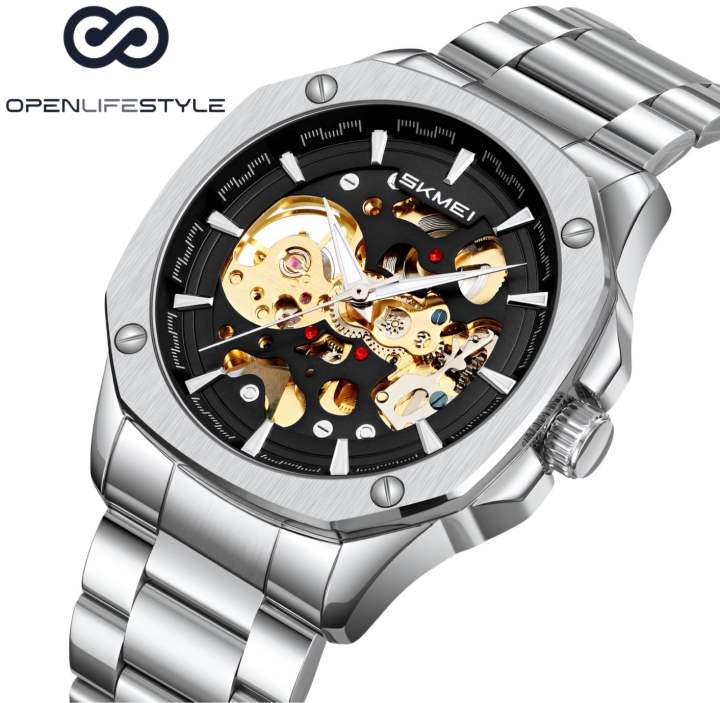 Skmei 9378 Men’s Mechanical Wrist Watch Solid Stainless Steel Strap Automatic Minimalist Design 5mm Thick Luxury