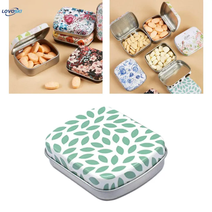 Small Tin Box with Lid Small Items Container Household Metal Hinged Tin Box