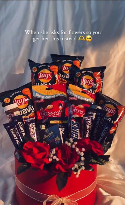 Snacks Basket available with flowers You can customize it