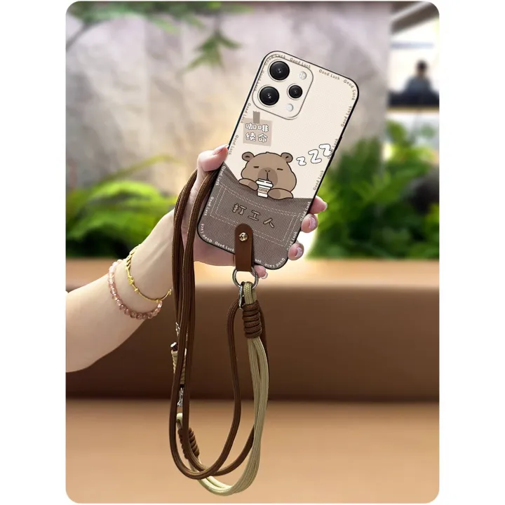 Soft case TPU Phone Case For Redmi12 4G Crossbody Fashion Design Necklace Silicone Waterproof Anti-dust Graffiti Cartoon