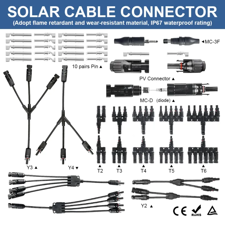 Solar Panel Cable Connector MC3/4 1000V 30A Male Female Connector IP67 with Diode Fuse for T Y Branch Parallel Solar Splitter