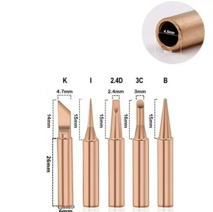 Soldering Iron Pure Copper Bits Iron Tips Set 5pcs Soldering Iron Tips Kit Replacement Soldering Iron Tips High-Quality Soldering Iron Bits Copper Soldering Iron Tips Set