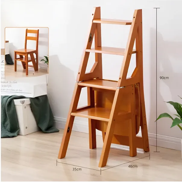 Solid Wood Ladder Chair Foldable Dual-Purpose Step Stool Indoor Climbing Pedal Stairs Multifunctional