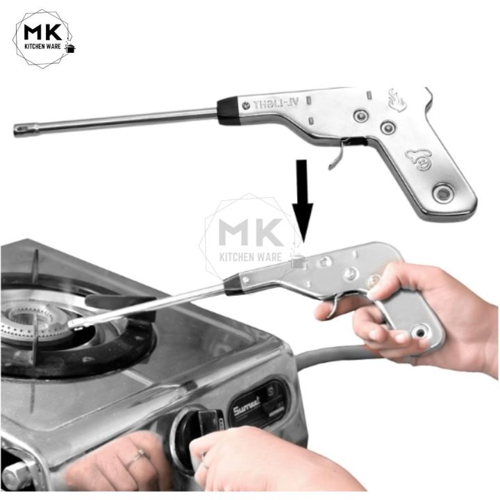 Spark Gas Lighter – Electronic Fire Pulse Ignitor for Kitchen Stove (No Battery, No Refill) – Manual Gun-Shaped Stainless Steel Spark Gas Lighter