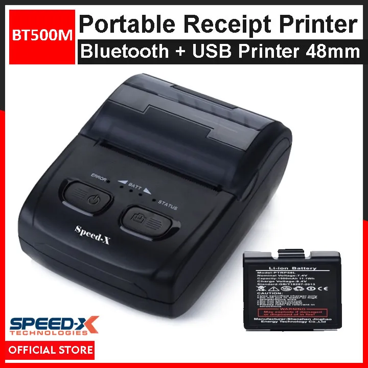 SpeedX Bt500m Mini Portable Bluetooth + USB Printer 48mm Raseed Receipt Printer