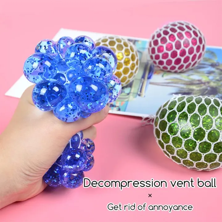 Squeeze Ball with Net, RosyFate Squishy Mesh Ball, Squeeze Ball in Net Glitter, Stress Ball Fidget Toy, Anti Stress Toy, for Children and Adults (A)