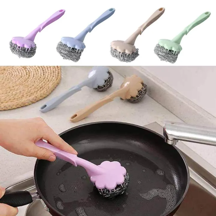 Stainless Steel Scrubbers with Handle Flower Shaped Cleaning Brush Steel Scrubbers Dish /Coffeemaker/Sink Brushes Kitchen Cleaning Tool