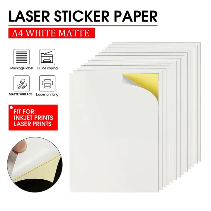 Sticker Paper/Label, 100 Sheets, White Matte, A4 Full Sheet Label, Inkjet or Laser Printer, Online Labels