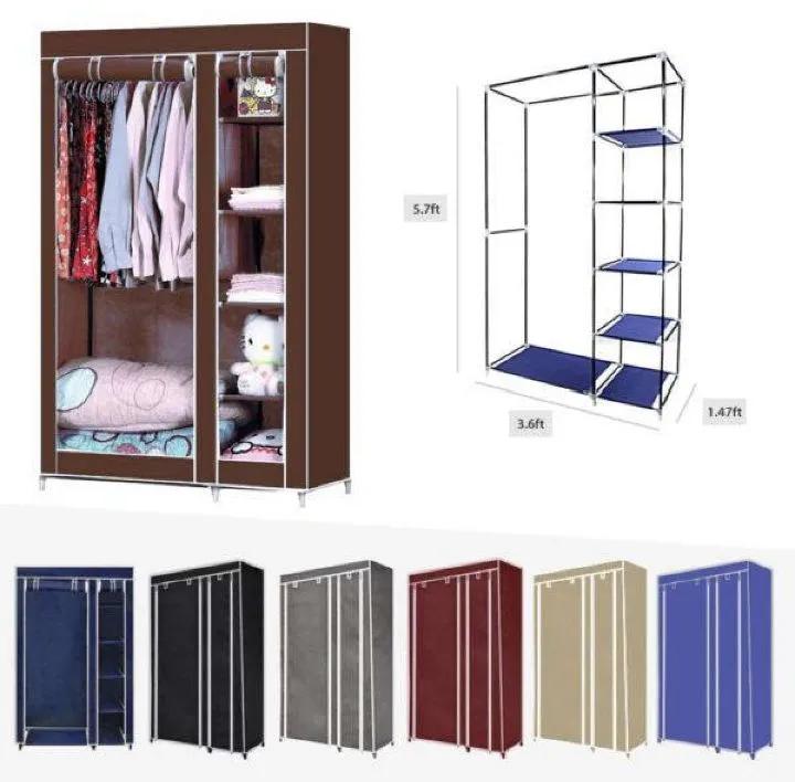 Storage Wardrobe Foldable and Movable Cloth/Fabric Wardrobe with Zip Up Collapsible Cupboard