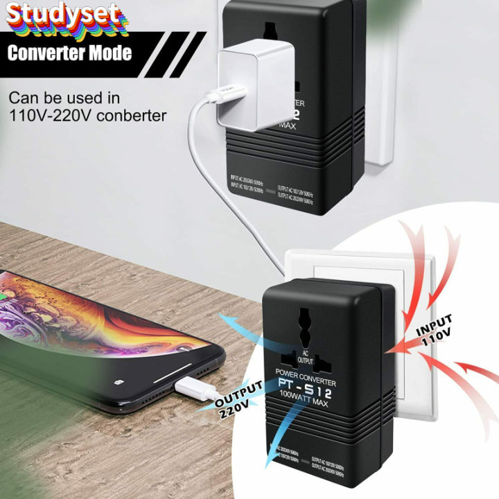 Studyset 100w Dual Voltage Transformer Light-weight High Temperature Resistant Ac 110v/120v To 220v/240v Power Converter Adapter