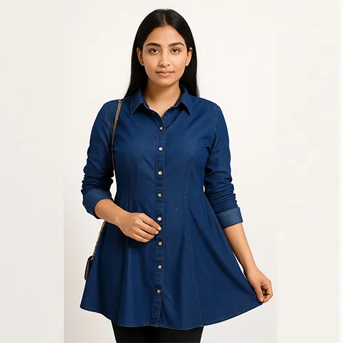 Girls' Denim Shirt - Button-Up Front, Long Sleeve, High-Quality Durable Fabric
