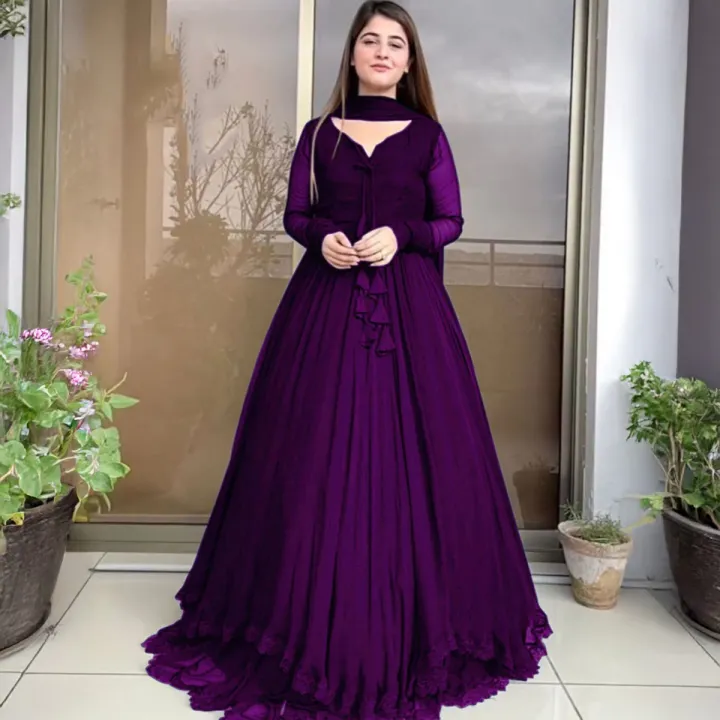 Stylish Long Frock for Women with Fancy Flair 3-Piece - Party Wear Frocks for Women