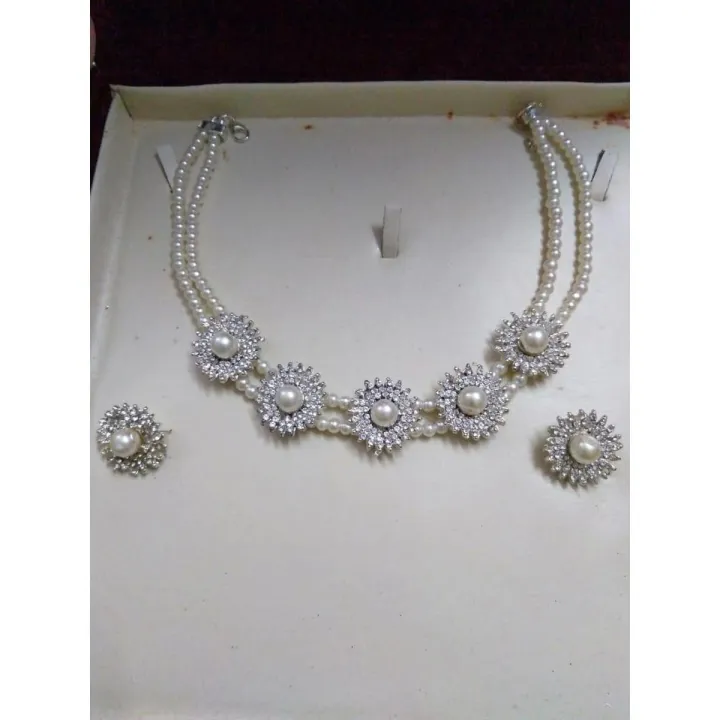 Stylish Zircon set with white pearls for women