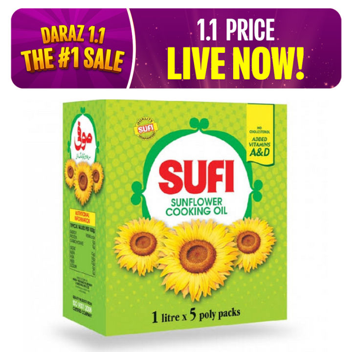 Sufi Sunflower Cooking Oil 1Ltr x 5 Poly Bags