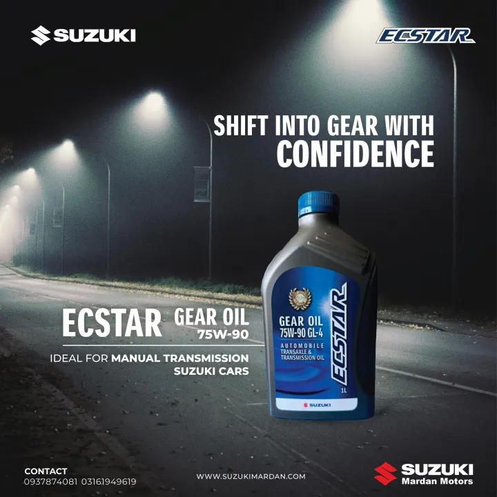 Suzuki Ecstar Synthetic Gear Oil 75W-90 GL-4: Superior Transmission Protection and Efficiency, 1 Litre Pack. Recommended Gear Oil for Manual Transmission Suzuki Cars, Alto, WagonR, Cultus, Swift, Mega Carry, Cultus, Jimny, APV. Imported Quality Gear Oil.
