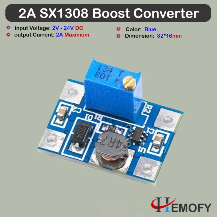 SX1308 DC-DC Step-Up Boost Converter Module Adjustable Power Supply 28V 2A 1.2MHz | Hemofy |