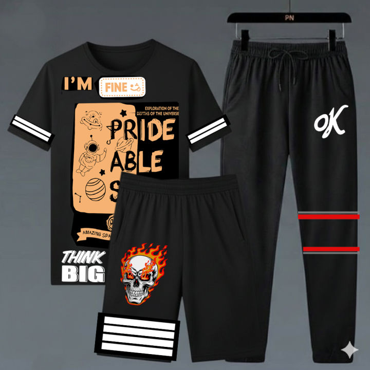 Tree Digital Printed White Summer Short Tracksuit for Men
