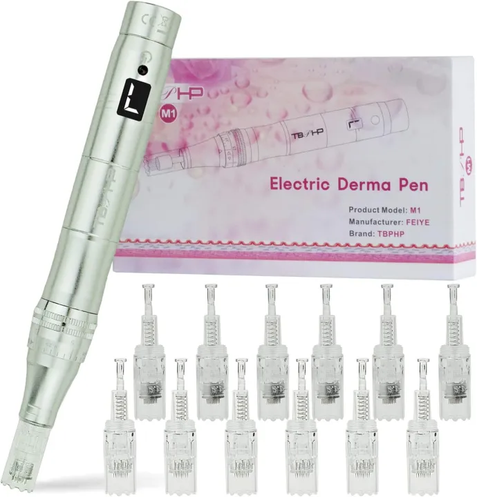TBPHP Dermapen M1 Upgraded Electric Wireless Beauty Pen LCD Screen with 12 Replacement Cartridges (Silver)