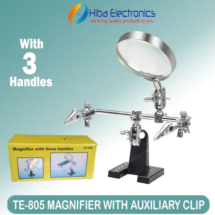 TE-805 5x Magnifying Glass With Three Handles Helping Hand Soldering Iron Stand Repinring Tool