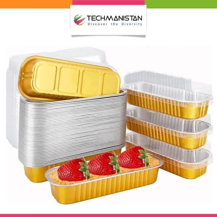 Techmanistan Pack of 5 - Random Color/Design Disposable Baking Tins Foil Pans With Lids , Aluminum Baking Pans With Lids Mini Cake Pans, Rectangle Muffin Tins Mini Brownie Loaf Baking Pans Containers