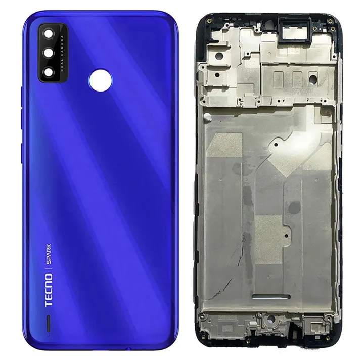 Tecno Spark 6 Go Middle Frame Housing with Power Volume Buttons & Camera Lens Complete Body Casing Replacement Spark 6 Go - Blue